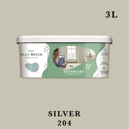 Ally pincel interior tinta prateada 3l. Revestimento com acabamento fosco natural adequado para uso interno e externo sob telhados. Formulado com água com resinas acrílicas, oferece alta cobertura e boa limpeza. A solução 2 em 1 perfeita, acabamento e primer no mesmo produto. Ficha técnica: rendimento: 10 m2/l. Acabamento fosco. Conteúdo de Cov: 30 gr/l. Diluição da 1ª demão: 15%. Diluição da 2ª demão: <10%. Tempo de secagem: 30". Tempo de repintura: 4h. Limpeza de ferramentas: água. Formatos: 3l (30m2), 10l (100m²). Benefícios: proteção antimofo. Primer e acabamento 2 em 1. Produto à base de água.