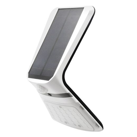 Aplique solar de parede 3,5w 430lm IP65 bateria recarregável de cor branca (3,7v/2300mah ref:38110) sensor de presença (2-8m) 2 tonalidades de luz (luz frontal 6000k luz fria e luz traseira 3000k luz quente) noite automática ligada, desligada automática durante o dia. 2 modos de iluminação. Modo a: sem movimento detectado 20% da luz frontal acesa e 100% da luz traseira acesa - com movimento 100% da luz frontal acesa e 100% da luz traseira. Modo b: sem detecção de movimento, luz frontal desligada e 100% luz traseira - com movimento 100% luz frontal e 100% luz traseira. Modo a: ativa-se automaticamente com carga superior a 30% - modo b: ativa-se automaticamente com carga inferior a 30% medida: 10,5x13cm (largura/profundidade/altura) edm