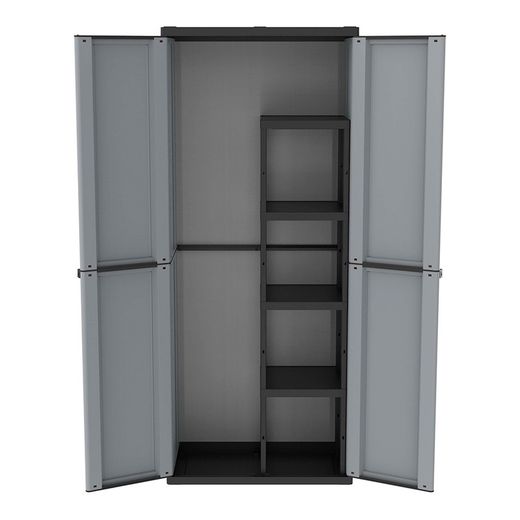 Gabinete de vassouras modelo jline368. Armário de duas portas com gaveta interna de 4 prateleiras 68x37,5x163,5cm. Para o serviço pós-venda, entre em contato com xaviermas@plasticosjobgar.com indicando o nome do contato, endereço de entrega, telefone, referência do produto, referência da peça e número de peças. Nenhuma alteração ou crédito é feito.