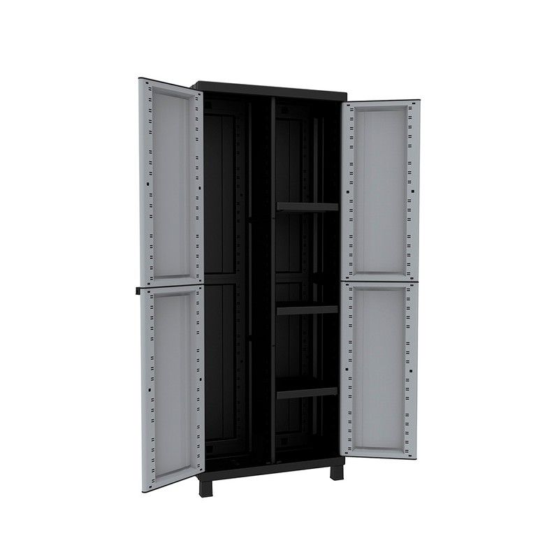 Armário de vassouras de duas portas com 3 prateleiras reguláveis twistblack3680 68x39x170cm para atendimento pós-venda, contate xaviermas@plasticosjobgar.com indicando nome de contato, endereço de entrega, telefone, referência do produto, referência da peça e número de peças. Nenhuma alteração ou crédito é feito.