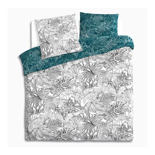 Capa de edredão modelo selva 240x220cm. Inclui duas capas de almofada de 65x65cm. Material: 100% algodão. Adequado para camas de 135cm, 150cm ou 160cm.