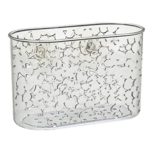 Cesto retangular de plástico transparente para banheiro com ventosas, modelo galet. Medidas: 18,5x11,5x8,5cm