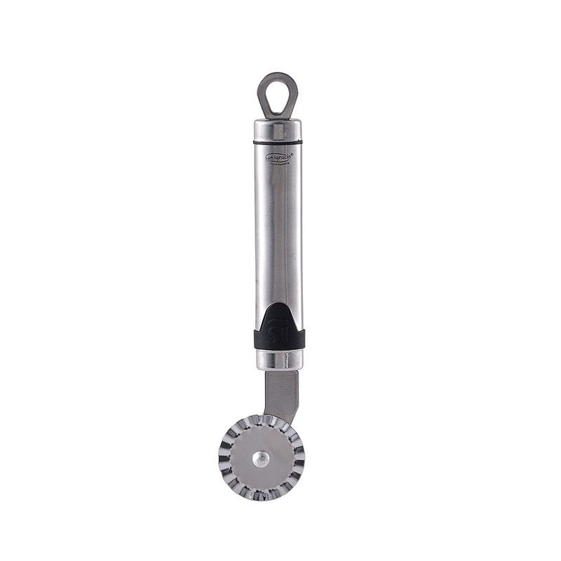 Cortador de pastelaria 17,8x4cm em aço inoxidável. Especialista sg7334 san ignacio. Cortador de macarrão versátil. Possui lâmina de aço inoxidável ideal para usar como picador de legumes, pães, pizzas e outros alimentos macios. Sua fabricação é resistente, durável e prática. Ideal para todos os tipos de massas. Sua lâmina é excelente para unir duas camadas durante o corte e divisão das unidades. Também funciona como cortador de pão. Fácil de segurar e manipular. Seu cabo é feito de aço inoxidável com formato ergonômico e possui detalhes pretos. Isso o torna um bom cortador de pizza e macarrão. Armazenamento prático. Possui um anel na extremidade da alça para pendurá-lo em qualquer gancho. A sua estrutura é fina e elegante, adaptando-se a qualquer cozinha de design moderno. Ferramenta pequena e transportável. Suas dimensões são de apenas 17,8x4cm. É pequeno para transportar para qualquer lugar. Seu formato é muito prático para cortar formas de biscoitos.