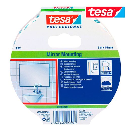 Fita dupla face para montagem de espelho 5m x 19mm 4952 tesa