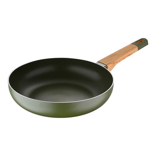 Frigideira 26x6,0cm 100% alumínio reciclado 2,4mm de espessura ind terra verde sg6762 san ignacio. Medidas: 26x6,0cm. A peça é confeccionada em alumínio prensado, material durável e 100% reciclável que oferece alta condutividade térmica. O interior da peça é revestido com um revestimento antiaderente que facilita o cozimento, evitando que os alimentos grudem, bem como a posterior limpeza. A base garante um aquecimento rápido e uma distribuição uniforme do calor. Este fundo é compatível com todos os tipos de fogões, inclusive os de indução. A alça da panela com tecnologia "soft touch" proporciona um toque suave para uma pegada muito mais confortável e segura.