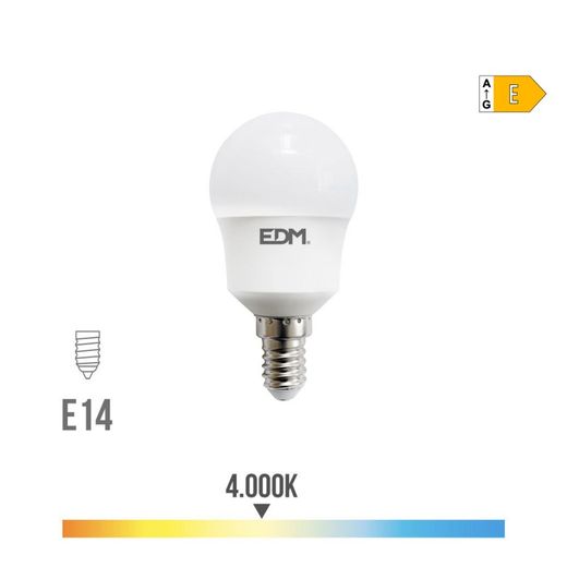 Lâmpada esférica LED E14 8,5w 940lm 4000k luz natural ø4,5x8,7cm (diâmetro/altura) 20000h ac 220-240v classe de energia: e. Ângulo de abertura: 200° edm
