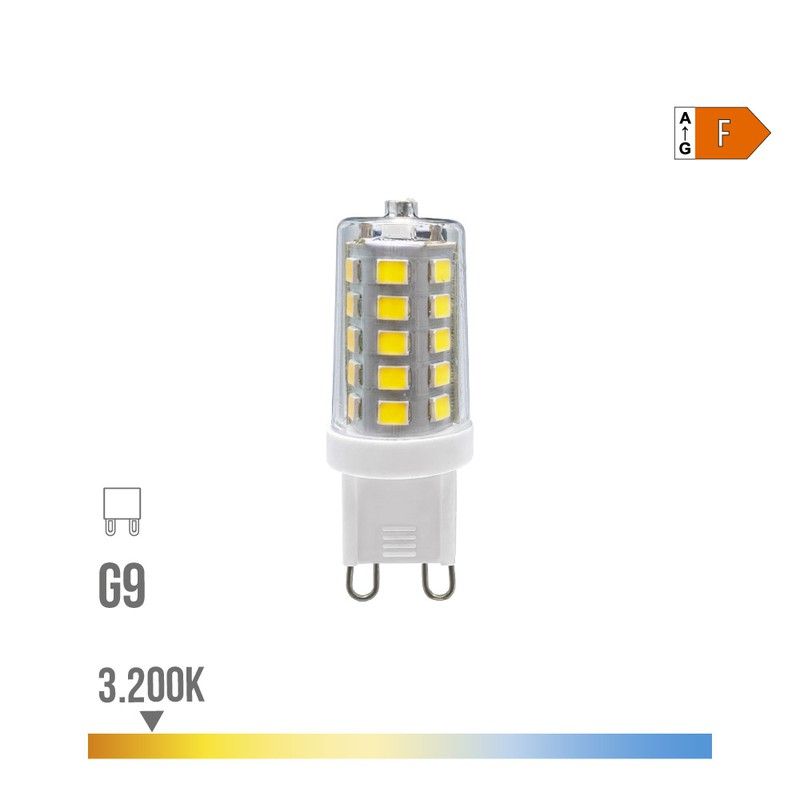 Lâmpada LED G9 3w 260lm 3200k luz quente regulável medidas: ø1,65x4,9cm (diâmetro/altura) 25000h ac/220-240v classe energética: f ângulo de abertura 270°, cri 80 edm
