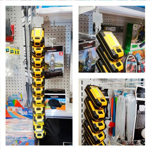 A faixa de venda cruzada da lanterna inclui 36392 12 unidades e faixa de autovenda com placa promocional. Ideal para colocar em camping, expositores de jardim, mangueiras, baterias, ferramentas, acessórios de carro, etc.