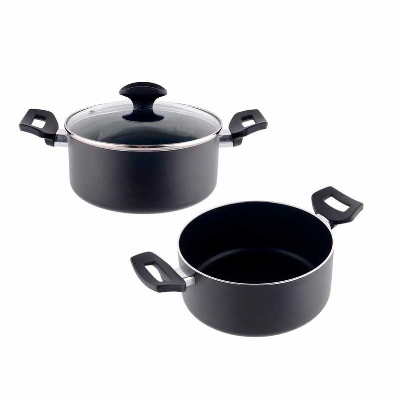 Panela antiaderente - "linha básica" - ø22cm - altura: 10cm - espessura: 2,5mm - alumínio 3003 - tecnologia Whitford - durabilidade máxima - fabricado de acordo com as normas da UE - adequado para indução, placa de cerâmica, gás e elétrica - tampa de vidro incluído - não é adequado para máquina de lavar louça - edm
