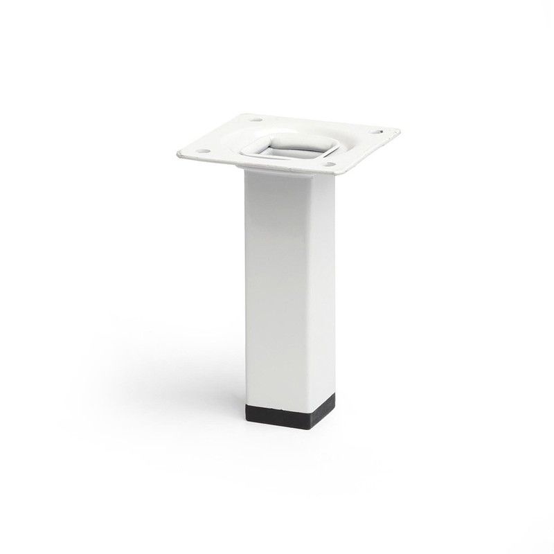Pé quadrado de aço estilo moderno para móveis baixos. Graças à versatilidade deste modelo, é adequado para uma grande variedade de projetos de bricolage, bricolage ou restauro, bem como para todo o tipo de mobiliário doméstico ou espaços comerciais. Altura da perna 10cm. Fabricado em aço com acabamento branco. Sistema de fixação parafusado. Não inclui parafusos. Dimensões: 2,5x2,5x10cm (largura/profundidade/altura). Peso máximo recomendado: 150kg. rei