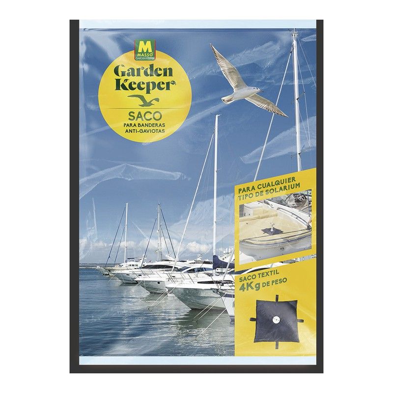 Suporte para bolsa 231669 masso. Suporte para instalação das bandeiras anti-gaivotas Garden Keeper em qualquer tipo de solário de barco. Suporte têxtil para evitar arranhões no barco. Peso de 4kg. Correias de ancoragem para evitar movimentos.
