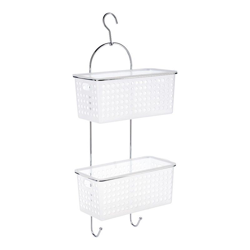 Suporte para chuveiro com dois cestos e gancho. Medidas: 54x30x14,2cm